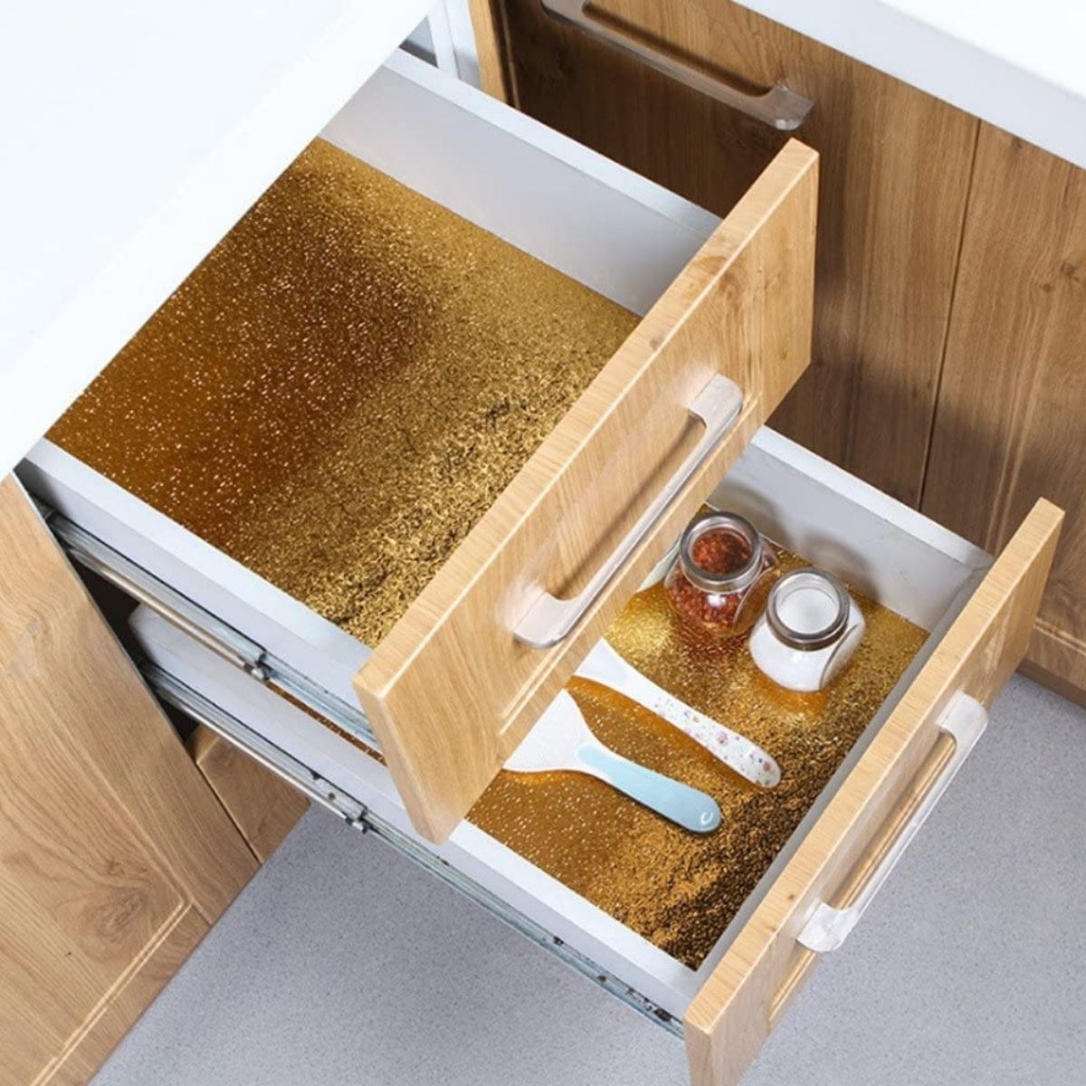 10 Metre Kendinden Yapışkanlı Silinebilir Mutfak Tezgah Üstü Sticker Folyo Gold Renk