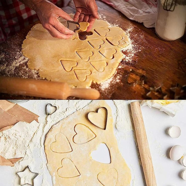 12 adet paslanmaz çelik kurabiye kalıbı seti, dayanıklı ve hijyenik yapısıyla mutfakta pratik kullanım sağlar. Kalpler, yıldızlar, çiçekler ve daireler gibi 4 farklı şekli bulunan bu set, her şeklin üç farklı boyutuyla toplam 12 parçadan oluşur. Yalnızca kurabiye hamuru için değil, aynı zamanda sebze, meyve, yumurta veya hamur işi sunumlarında da yaratıcı biçimlendirmeler yapmanıza imkân tanır. Paslanmaz çelik yapısı sayesinde uzun ömürlü kullanım sunar ve kolay temizlenir. Pürüzsüz kenarları sayesinde güvenli bir kullanım deneyimi sağlar. Evde, kafelerde veya pastanelerde dekoratif sunumlar yapmak isteyenler için ideal bir yardımcıdır.