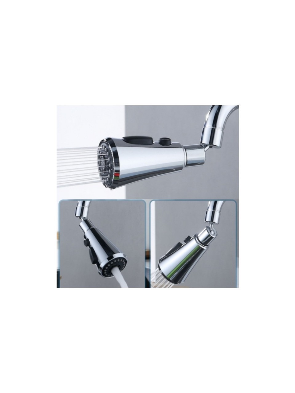 360 DERECE DÖNEBİLEN- 3 MOD KROM YAĞMUR PÜSKÜRTME BORULU KUBAR MUSLUK UCU