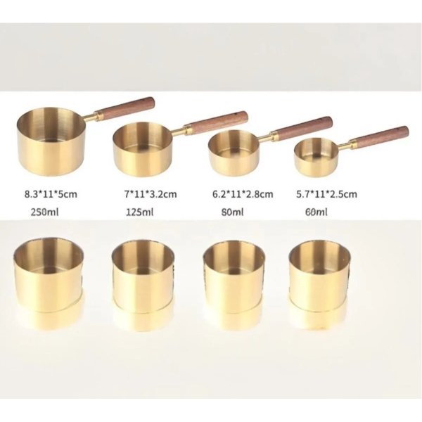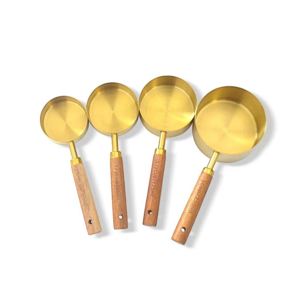 Bu 4'lü ahşap saplı ölçü kaşığı seti, mutfakta ölçü almak için ideal bir çözümdür. Metal kısmı şık altın rengindedir, ahşap sapları ise ergonomik olup rahat bir kullanım sağlar. Farklı boyutlarda 4 ölçü kaşığından oluşan bu set, her türlü yemek tarifinde doğru ölçüleri almanıza yardımcı olur. Estetik tasarımı, mutfakta şıklık yaratır. Her bir kaşık, dayanıklı malzemelerle üretilmiştir ve uzun süreli kullanım için uygundur.