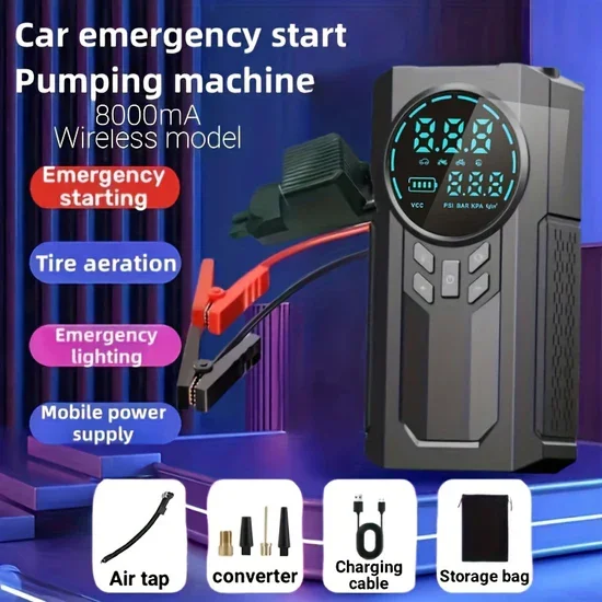 Beş fonksiyon: Lastik şişirme, Akü Ateşleme, Acil durum aydınlatması, Mobil güç kaynağı, SOS uyarı ışıkları