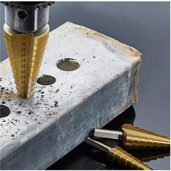 6 PARÇA KADEMELİ MATKAP UCU SETİÜrün ÖzellikleriFarklı çaplarda delikler açmak ve malzeme işlemek için tasarlanmış bu kademeli matkap ve testere uçları seti, çok yönlü kullanım sunar. Kademeli tasarımı sayesinde tek bir uç ile farklı çaplarda delikler açılabilir. Aşınmaya ve ısıya dayanıklı titanyum kaplaması sayesinde uzun ömürlüdür ve daha az sürtünme ile yüksek performans sağlar. Keskin diş yapısına sahip testere uçları, sert malzemelerde bile hızlı ve temiz kesim yapmayı mümkün kılar. Metal, plastik, ahşap, alüminyum ve sac gibi birçok malzemede kullanılabilir. Altıgen şaft yapısı sayesinde matkap uçları sıkıca tutularak kayma önlenir ve şarjlı ya da kablolu matkaplarla uyumlu çalışır. Sac ve metal işleme, ahşap işçiliği, elektrik tesisat işleri, PVC ve plastik delme uygulamalarında mükemmel bir çözümdür.Paket İçeriği1 Adet 6 Parça Kademeli Matkap Ucu Seti