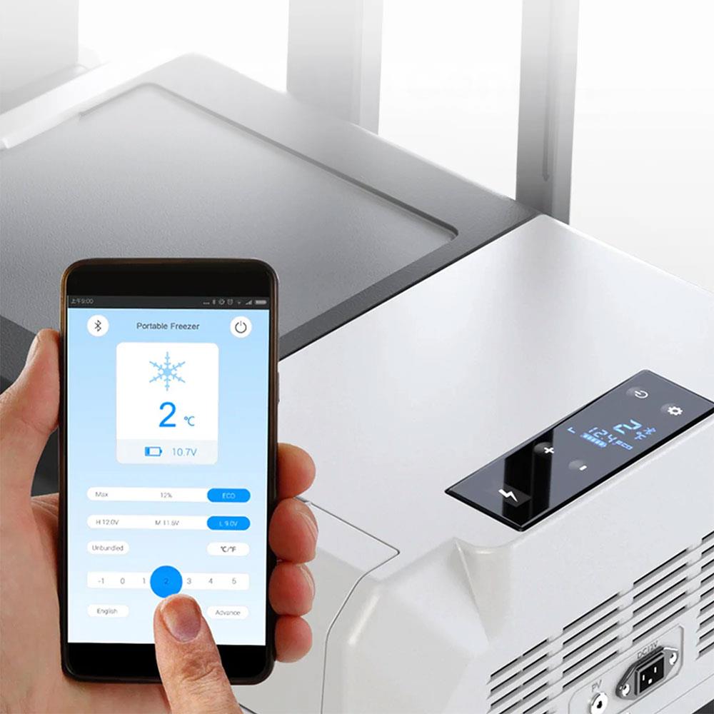 · ACOPOWER Bluetooh bağlantısı ile cep telefonunuza indireceğiniz PORTABLE FREEZER mobil uygulama sayesinde telefonunuzdan buzdolabınızı hızlı ve kolay şekilde yönetebilme imkânı sağlar.