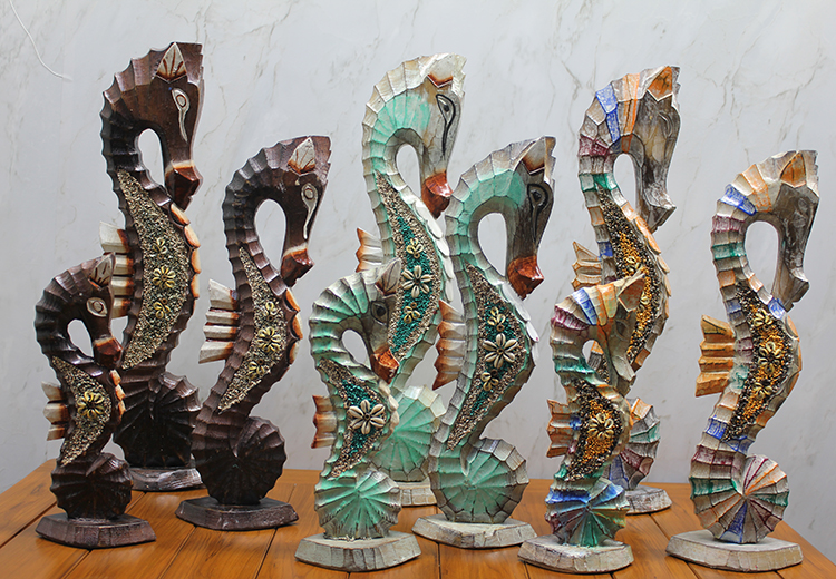 AHŞAP 3'LÜ DENİZATI KUMLUÜrün ÖzellikleriDoğal ahşaptan üretilmiş 3 farklı boyuttaki denizatı figürlü dekoratif set, kum dokulu detaylarıyla deniz temalı dekorasyon için özel olarak tasarlanmıştır. Set içerisinde 30 cm, 40 cm ve 50 cm boyutlarında üç farklı denizatı figürü bulunmaktadır. El işçiliği ile detaylandırılmış bu özel tasarım, sahil evi, yazlık, ofis ve modern dekorasyon tarzlarına uyum sağlar. Kaliteli ve dayanıklı ahşap malzemesi sayesinde uzun ömürlüdür. Zemin, masa, raf veya vitrin gibi alanlarda dekoratif amaçlı kullanılabilir.Paket İçeriği1 adet Ahşap 3'lü Denizatı Kumlu