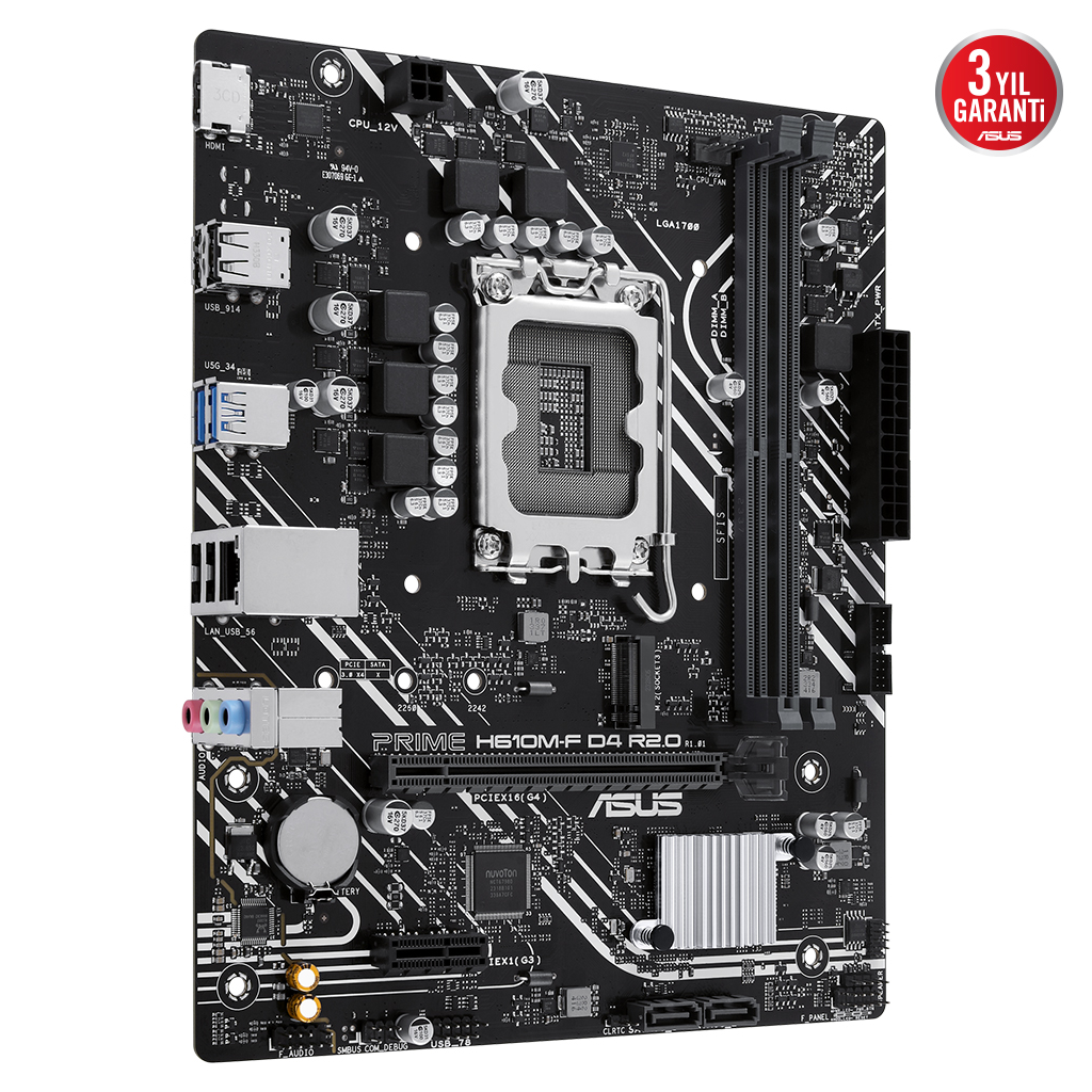 ASUS PRIME H610M-F D4 R2.0 Intel® H610 LGA 1700 micro-ATX anakart, PCIe 4.0, M.2 yuvası, DDR4, Realtek 1Gb Ethernet, HDMI™, SATA 6 Gbps ve USB 5Gbps bağlantı noktaları