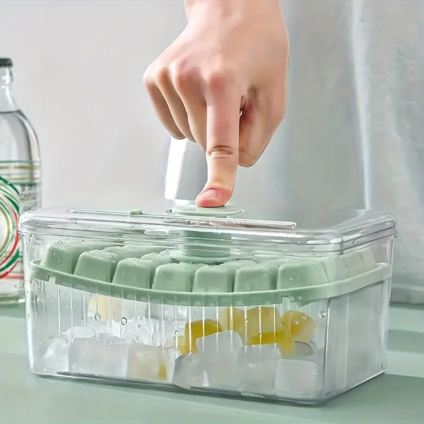 Basmalı hazneli buzluk, mutfakta kullanım kolaylığı sağlamak için özel olarak tasarlanmış pratik bir üründür. Dayanıklı ve BPA içermeyen kaliteli plastik malzemeden üretilmiş olup, gıda ile temasa uygundur. Ürün iki ayrı kalıptan oluşur ve tek seferde toplamda 56 adet buz küpü hazırlama kapasitesine sahiptir. Şeffaf kapaklı tasarımı sayesinde buzların durumu kolayca kontrol edilebilir. Üzerinde yer alan basmalı mekanizma sayesinde buz küplerini elinizi ıslatmadan ve kırma işlemiyle uğraşmadan zahmetsizce çıkarmanıza olanak tanır. Buzları temiz ve hijyenik bir şekilde saklamanız için özel haznesi mevcuttur. Kompakt boyutu sayesinde buzdolabında fazla yer kaplamaz ve kolay temizlenebilir yapısıyla pratik bir kullanım sunar.Ürün ölçüleri 19 cm uzunluk, 11,6 cm genişlik ve 8 cm yükseklikten oluşmaktadır. Fonksiyonel yapısı ile mutfak düzeninizi bozmadan, buz hazırlama sürecinizi hızlı ve hijyenik hale getirir.