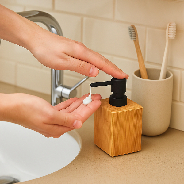 Büyük Ahşap Sıvı Sabunluk, doğal bambu ahşap tasarımı ile banyonuza veya mutfağınıza estetik ve modern bir dokunuş katar. 100 ml hacmiyle günlük kullanım için pratik bir çözüm sunar. Dayanıklı yapısı sayesinde uzun ömürlüdür ve paslanmaz pompa sistemi ile hijyenik bir kullanım sağlar. Minimalist tasarımı, her dekorasyon tarzına uyum sağlayarak yaşam alanlarınıza şıklık katar.Ahşap gövdesi sayesinde çevre dostu bir üründür. Pompaj mekanizması sıvı sabun, bulaşık deterjanı veya dezenfektan için kullanılabilir. Kompakt boyutu sayesinde lavabo kenarında fazla yer kaplamaz, şık ve düzenli bir görünüm oluşturur. Kullanımı kolay olan bu sabunluk, hem ev hem de ofis ortamları için ideal bir üründür.