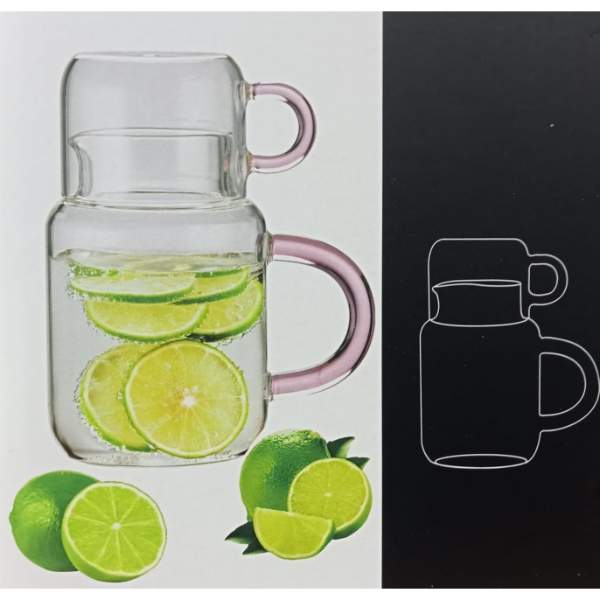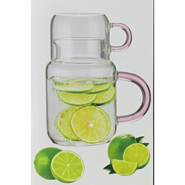 Cam Bardak Sürahi, hem bardak hem de sürahi olarak kullanılabilen çok amaçlı bir tasarıma sahiptir. Üst kısmında yer alan bardak, alt kısmı ise sürahi olarak kullanılmaktadır. Şeffaf cam gövdesi ve renkli kulp detayı ile modern bir tasarıma sahiptir. Saplı tasarımı sayesinde tutuş kolaylığı sağlar. 690 ml kapasiteye sahiptir ve su, meyve suyu, limonata gibi içecekleri servis etmek için idealdir. Mutfakta veya ofiste pratik kullanım için şık bir çözümdür.Ürün farklı renklerde mevcuttur ve stok durumuna göre karışık gönderilmektedir.