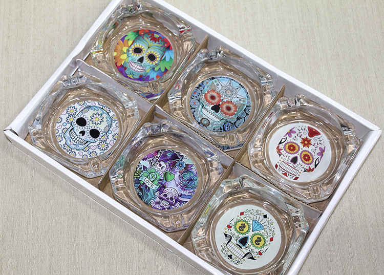 Cam küllük, renkli kuru kafa baskılarıyla tasarlanmış şık ve modern bir dekoratif objedir. Dayanıklı cam malzemeden üretilmiş olan bu küllük, hem görsel olarak dikkat çekici hem de kullanışlıdır. Renkli baskılar, ürüne dinamik bir hava katarak her alanda kullanılabilecek estetik bir parça oluşturur.