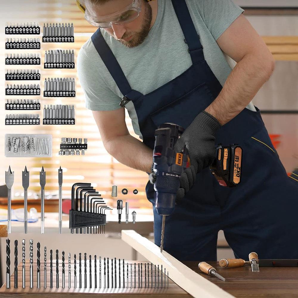 · CAT DX12SET 18Volt/2.0Ah Li-ion Tek Akülü Kömürsüz Profesyonel Şarjlı Darbeli Matkap + DA01903 201 Parça Delme/Vidalama Uç Seti