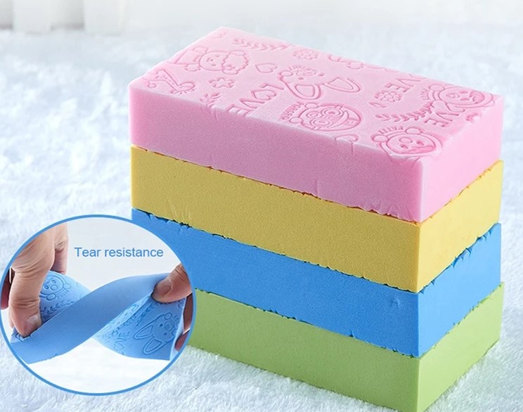 Bu banyo süngeri, süngerler ve cilt arasındaki sürtünmeyi artıran ve çamur sürtünmesini daha iyi hale getiren hassas taneciklere sahiptir.
