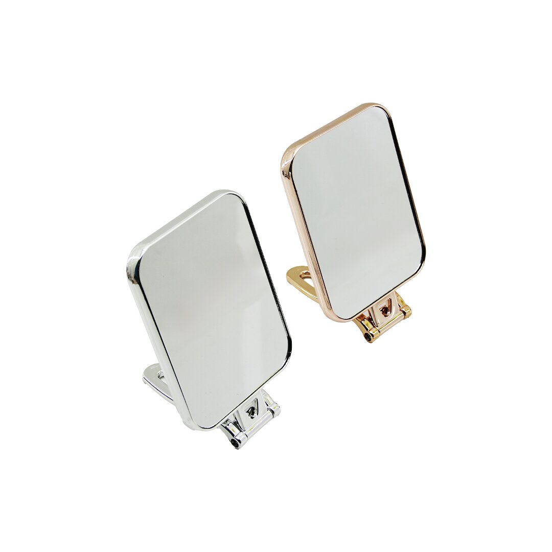 DİKDÖRTGEN 15X11.5CM MAKYAJ AYNASI ÇİFT TARAFLI BRONZ - GÜMÜŞ PLS.ÇERÇEVE KATLANIR AYAKLI