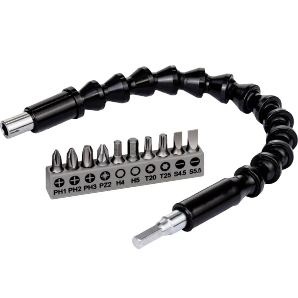 Esnek şaftlı tornavida ucu seti, Phillips (Yıldız), düz uçlu, Torx (Yıldız-çentikli), Hex (Altıgen) gibi çeşitli uç tipleriyle farklı vida başlıklarına uyum sağlar. PH, H, T, SL gibi uç tipleriyle geniş bir kullanım alanı sunar. Esnek uzatma aparatı, ulaşılması zor yerlerde vidalama yapmanıza imkan tanır (örneğin mobilya köşeleri, dar alanlar gibi). Uç kısmı manyetiktir, böylece vida uçları kolayca tutturulur ve düşmez. Elektrikli matkap, vidalama makinesi veya manuel tornavida ile uyumludur. Evde tamir işleri, mobilya montajı, elektronik cihaz açma işlemleri için oldukça kullanışlıdır. Esnek şaftı 360 derece bükülebilir, bu da sert açılarda rahat çalışmanızı sağlar.