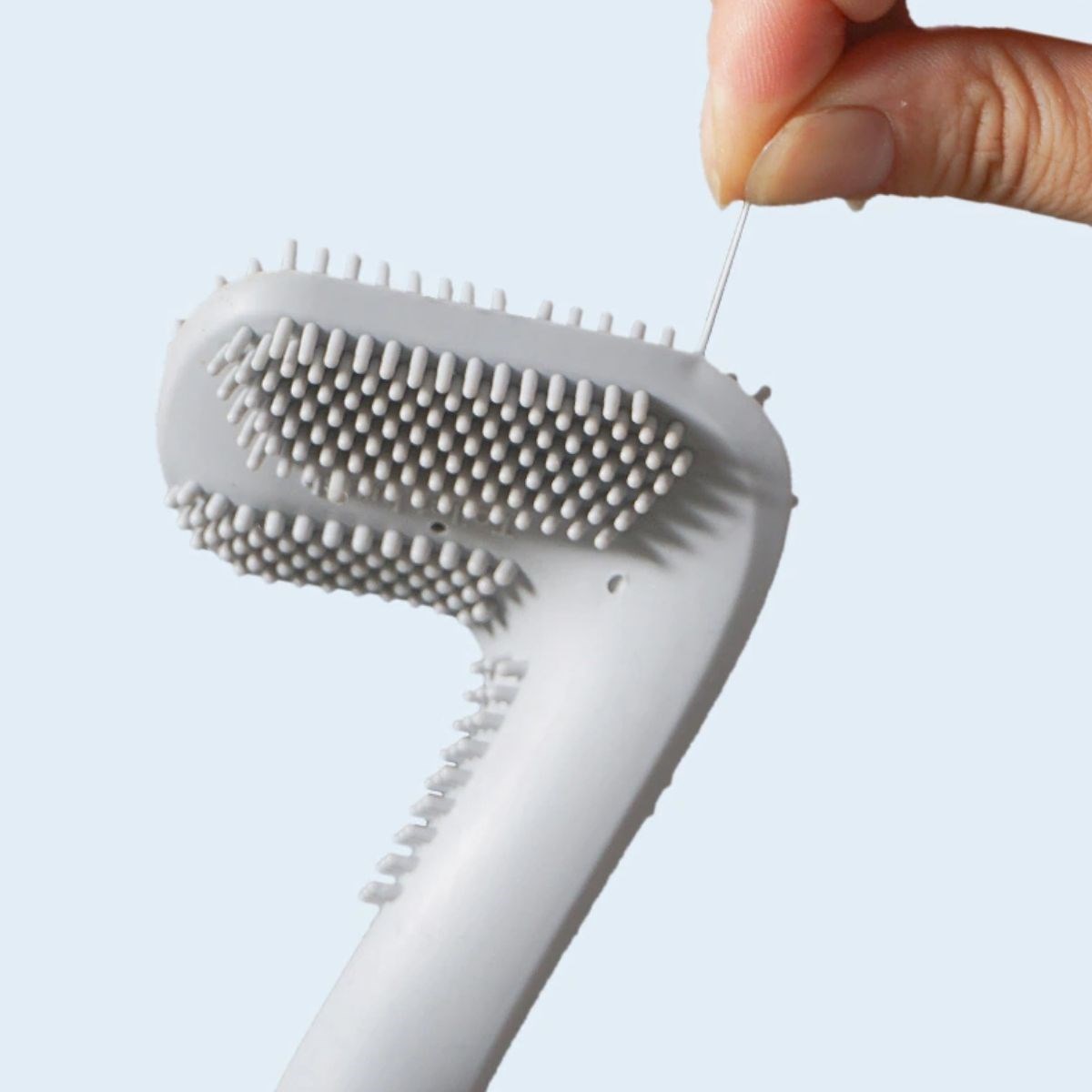 Yüksek kaliteli silikon malzemelerden yapılmış fırçanın tırtıkları klozete ve fayansa zarar vermez iz bırakmaz. Saç veya kıl gibi maddelerin dolaşmasına elverişli olmadığı için temizliği kolaydır.