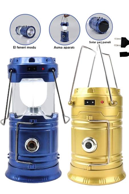 GÜNEŞ ENERJİLİ ÇOK FONKSİYONLU KAMP FENERİDoğanın keyfini çıkarırken güvenle aydınlanmanızı sağlayacak olan güneş enerjili çok fonksiyonlu kamp feneri, yenilikçi tasarımı ve işlevselliği ile öne çıkar. Çok yönlü şarj sistemi sayesinde güneş enerjisi, USB veya priz bağlantısı ile kolayca şarj edilebilir. Ergonomik tasarımı ve açılıp kapanır yapısıyla kullanımı son derece kolaydır. Askılığı sayesinde istediğiniz yere asabilir ve çift taraflı tutma kulpu ile taşıması pratiktir.Özellikler:Ergonomik Tasarım:Kullanımı kolay olan açılıp kapanır tasarımı ve çift taraflı tutma kulpuyla, herkesin rahatlıkla kullanabileceği bir üründür.Güneş Enerjisi ve Çok Fonksiyonlu Şarj Sistemi:Güneş enerjisi, USB veya priz bağlantısı ile şarj olabilme özelliği, her zaman ve her yerde güvenilir bir aydınlatma sağlar.LED Aydınlatma:Beyaz ışık rengine sahip LED lambası, etrafınızı 16 saate kadar aydınlatırken enerji tasarrufu sağlar.Taşınabilirlik:Kompakt boyutu (13cm * 9 cm) ve hafif yapısıyla her yere kolayca taşınabilir ve istenilen yere asılabilir.Çoklu Kullanım:USB çıkışı, telefon veya benzeri cihazları şarj etme imkanı sunar, böylece kamp sırasında iletişimde kalmak daha da kolaylaşır.Paket İçeriği1 adet güneş enerjili çok fonksiyonlu kamp feneri1 adet şarj kablosuGüneş enerjili çok fonksiyonlu kamp feneri, doğa tutkunları ve kamp severler için ideal bir aydınlatma çözümü sunar. Hem pratik hem de çevre dostu olan bu fener, her zaman ve her yerde güvenilir bir aydınlatma sağlayarak maceranızı daha keyifli hale getirir.
