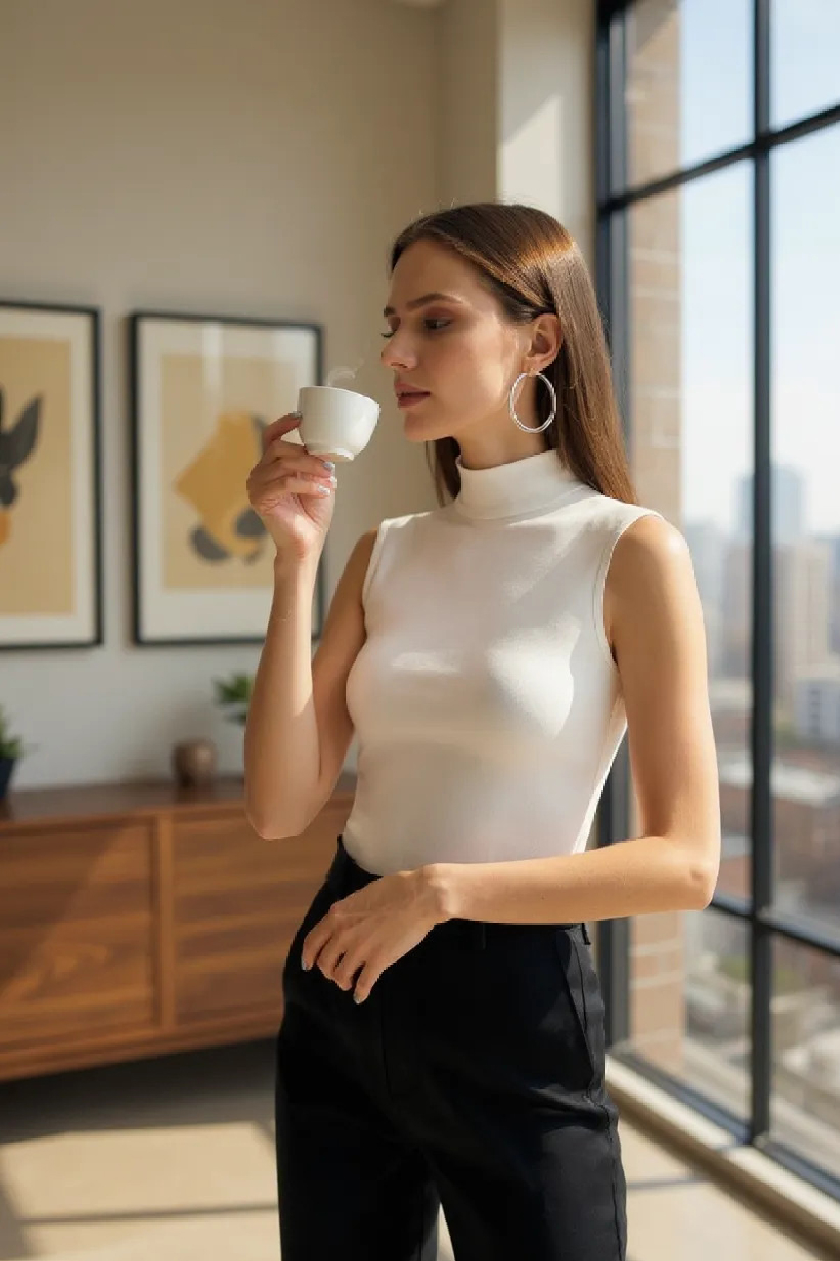 Temiz ve minimal çizgileriyle dikkat çeken bu model; günlük kombinlerden ofis şıklığına, tatil stilinden kat kat giyime kadar her ortamda rahatlıkla kullanılabilir.