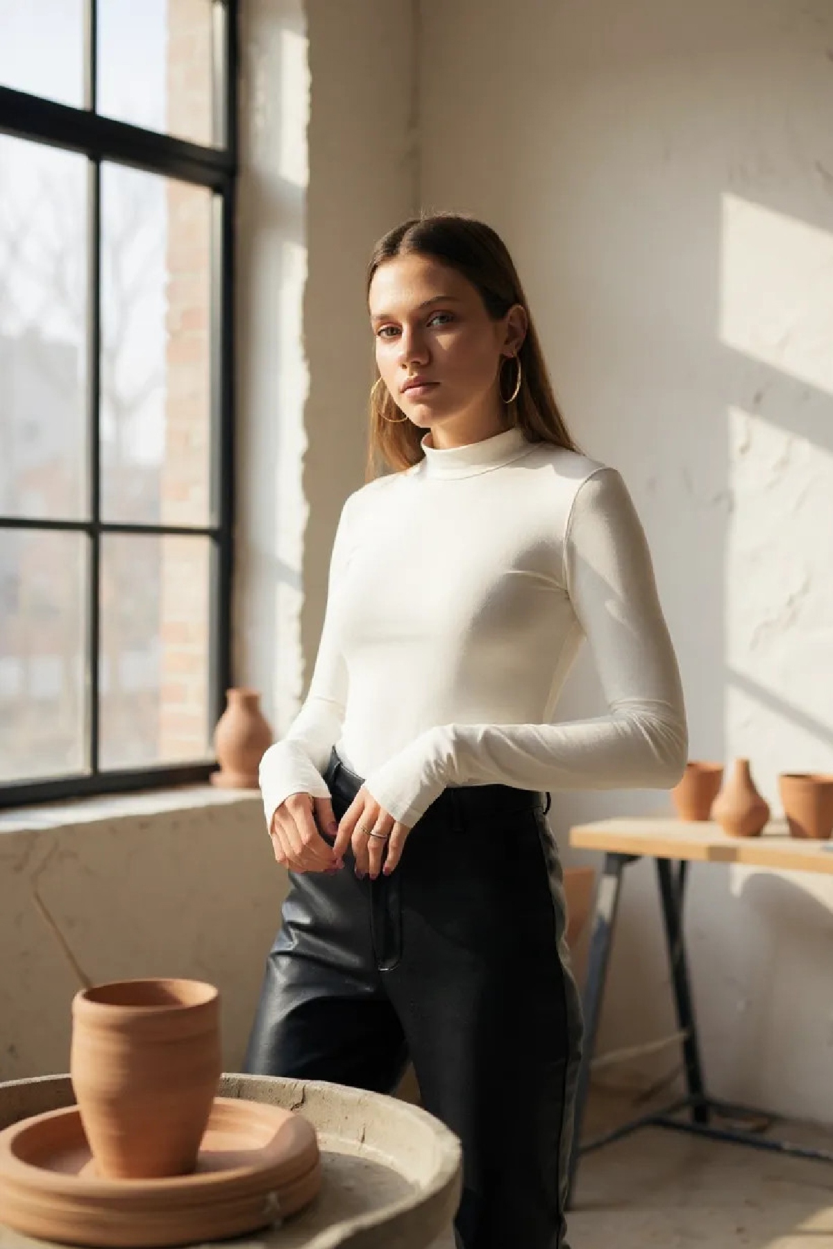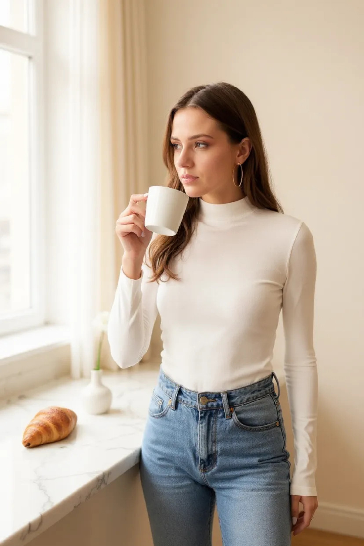 Bu kadın beyaz uzun kollu body, her stile uyum sağlayan kurtarıcı bir parça olacak.