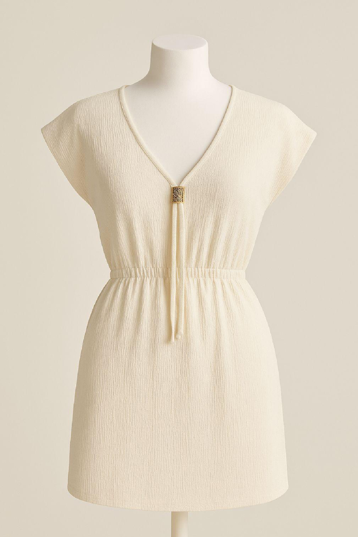 Mini boyu sayesinde bacak boyunu daha uzun gösteren bu plaj elbisesi, mayo ve bikini üzerine rahatlıkla giyilebileceği gibi yaz akşamlarında sandalet ya da terliklerle de kombinlenebilir.