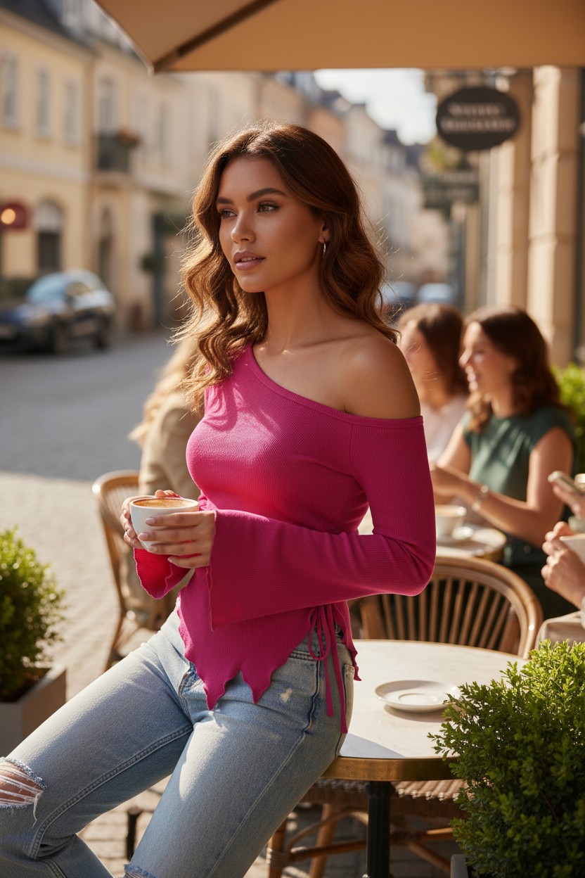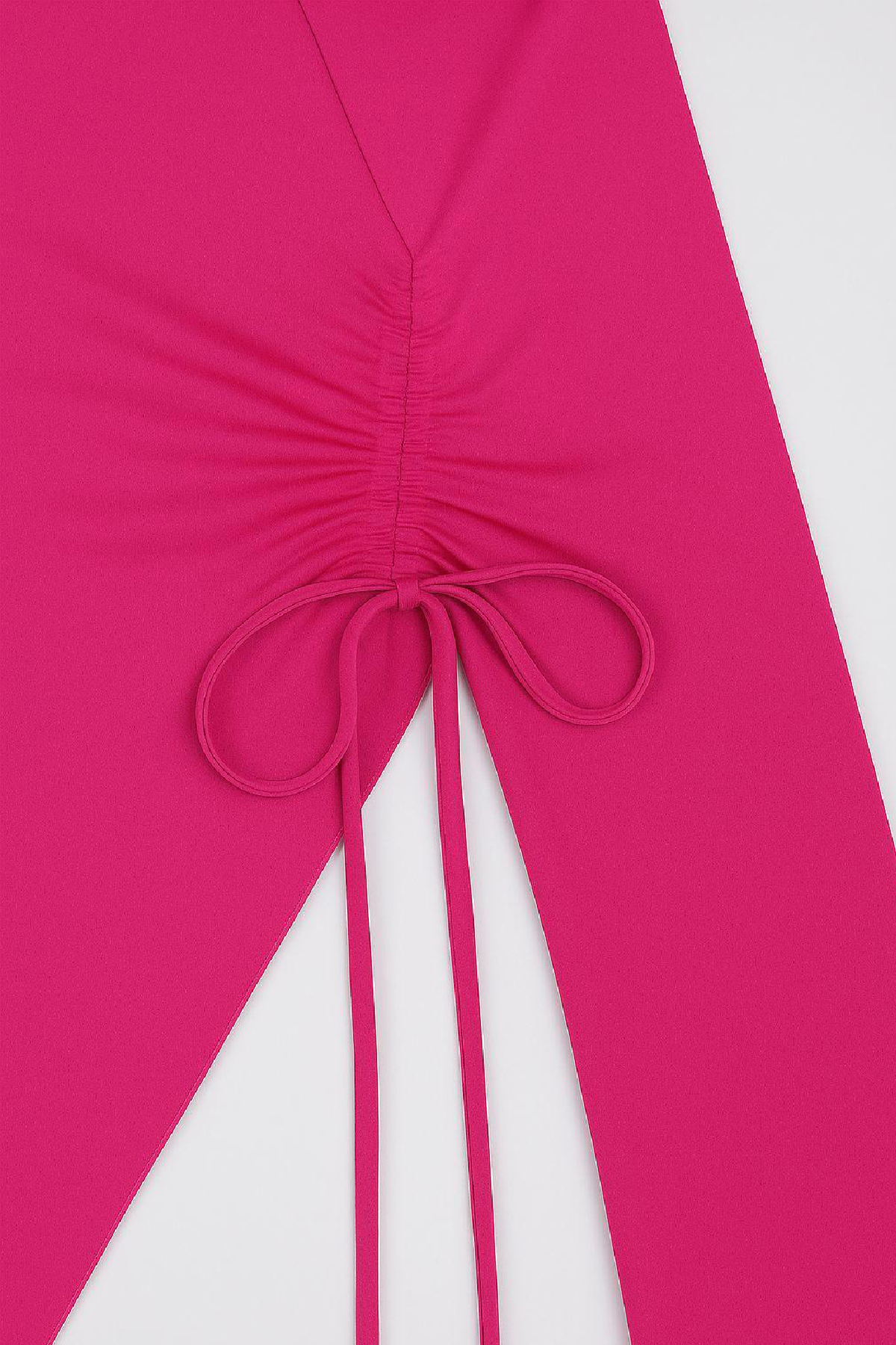- İddialı ama zarif bir görünüm isteyenler için Kadın Fuşya Asimetrik Yaka Drapeli Yan Bağlamalı Bluz, gardırobun en enerjik parçalarından biri olacak.