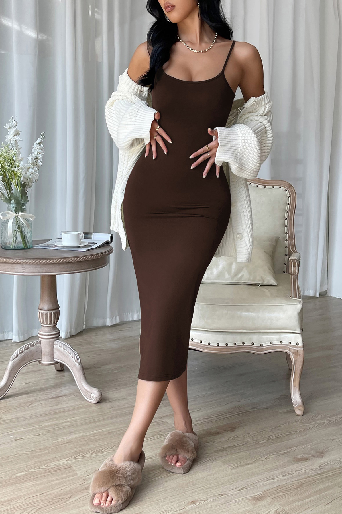 - Askılı Kol ve Yırtmaç Detaylı Uzun Gecelik.