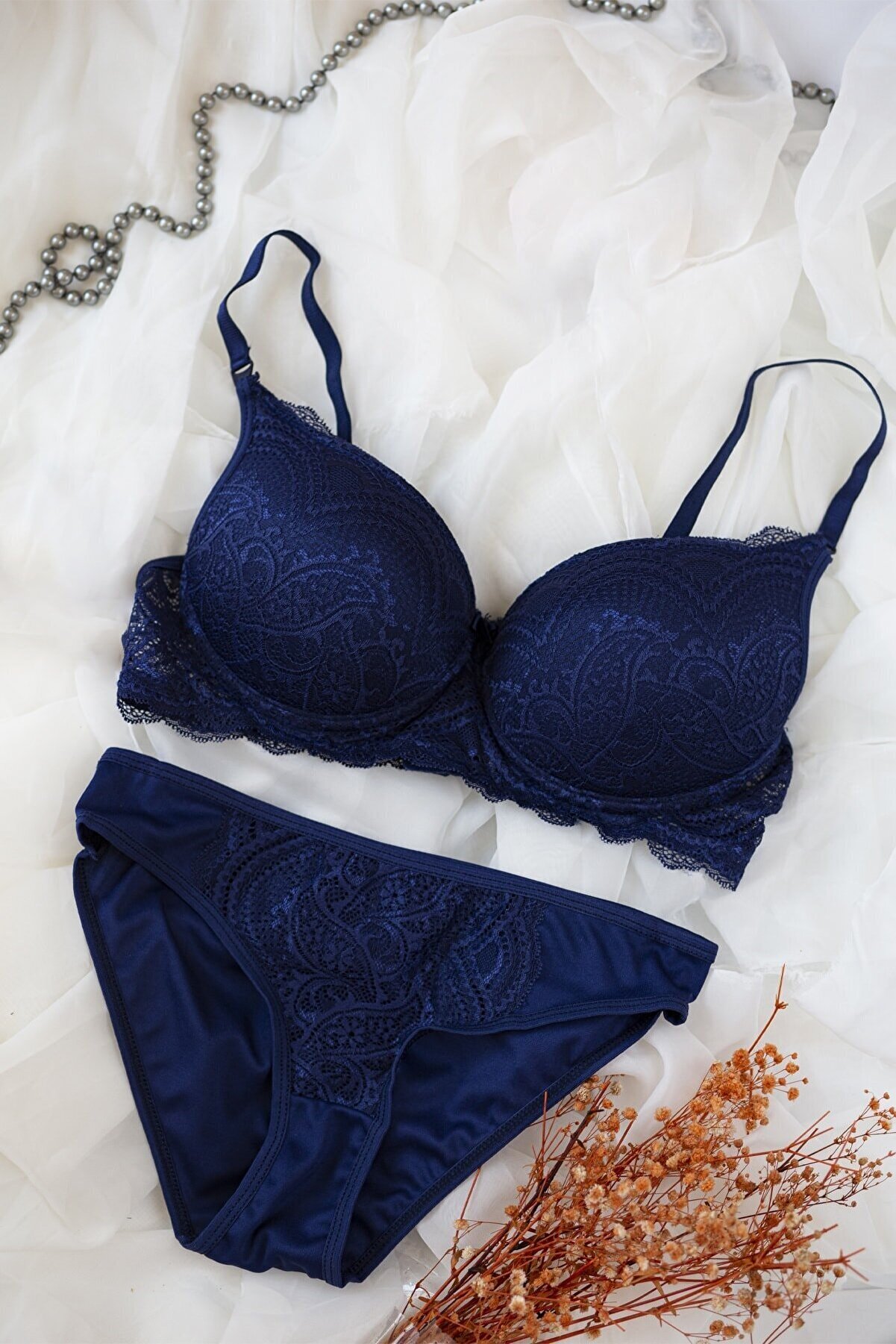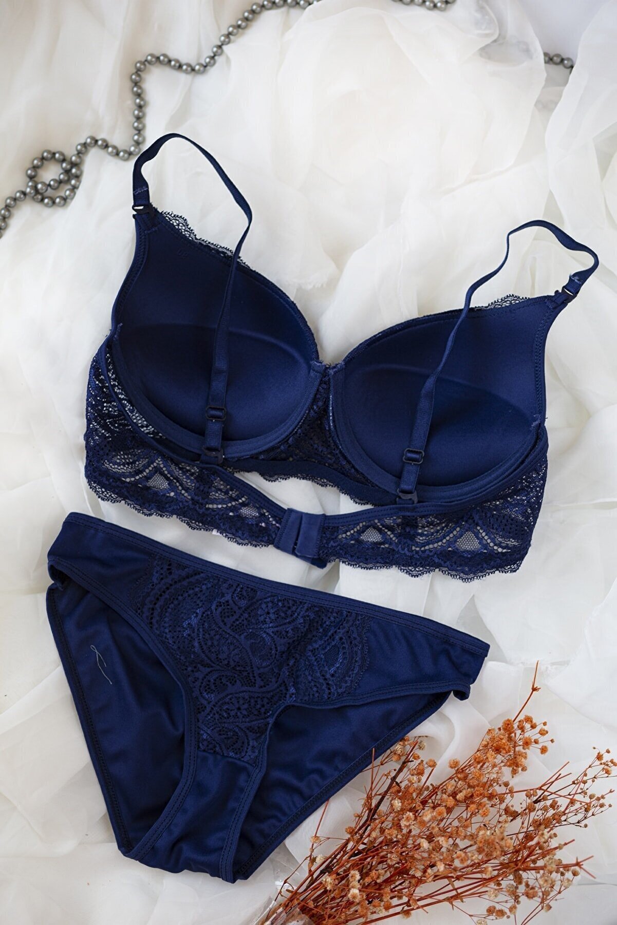- Kadın Lacivert Dolgulu Dantel Sütyen Ve Külot Takım, modern tasarımı ve rahat kalıbıyla öne çıkan bir üründür. Günlük kullanım ve özel günler için uygundur.