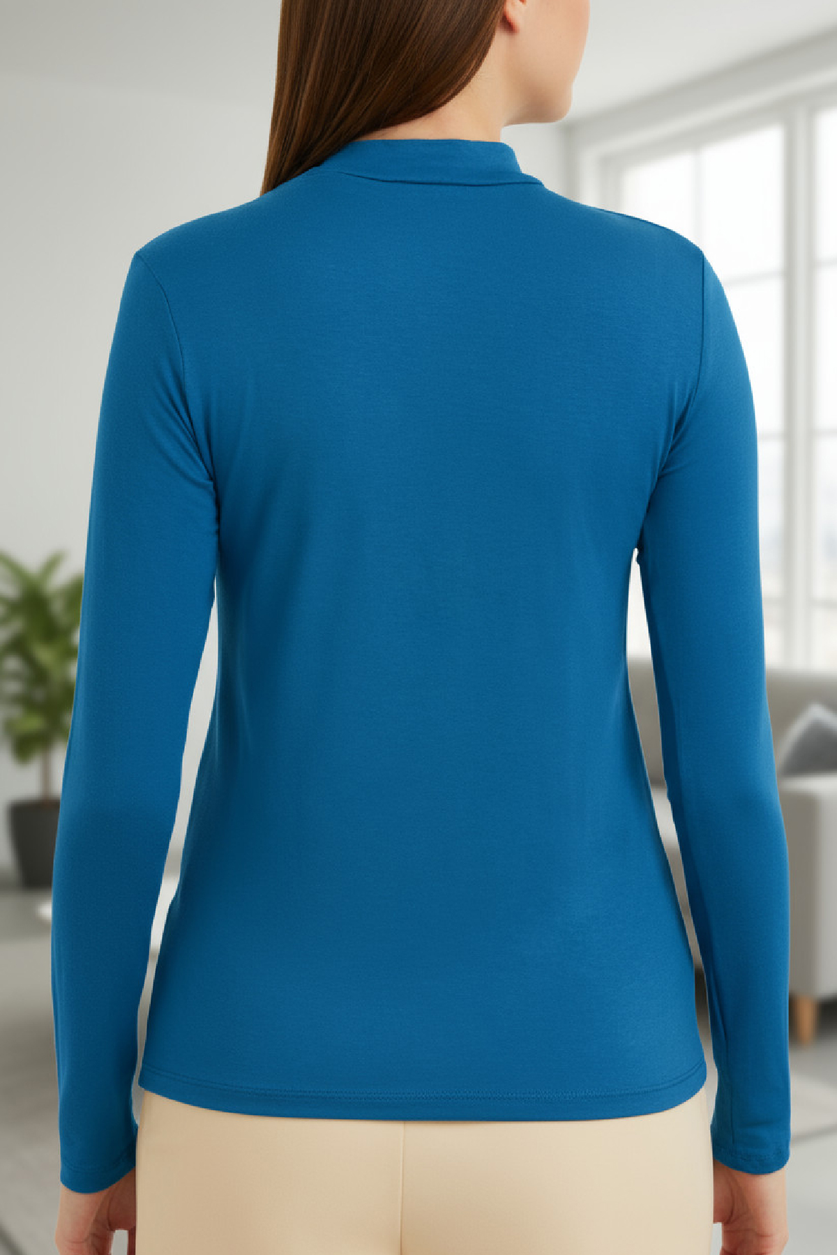 Bu kadın mavi uzun kollu body, enerjik rengi ve modern tasarımıyla hem gündelik hem de şık kombinlerde stilinizi tamamlayacak.