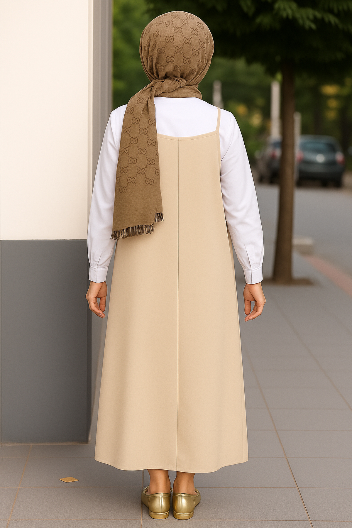 Her kadının dolabında mutlaka bulunması gereken bu kadın taş rengi askılı jile elbise, hem şık hem de pratik kombinler için ideal bir seçim.