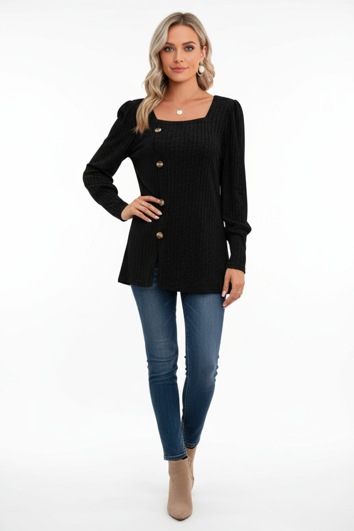 Minimal çizgilerle tasarlanan bu uzun bluz, hem günlük giyimde hem de ofis kombinlerinde rahatlıkla kullanılabilir.