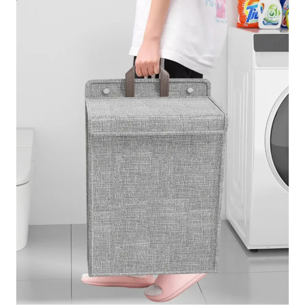 Katlanabilir asılabilir kirli çamaşır sepeti, hem yerden tasarruf sağlayan hem de estetik görünüme sahip fonksiyonel bir üründür. Dayanıklı kumaş malzemeden üretilmiştir ve çamaşır odası, banyo, yatak odası gibi alanlarda rahatlıkla kullanılabilir. Duvara veya kapı arkasına asılabilen özel askı aparatları sayesinde sabitlenebilir; gerektiğinde kolayca çıkarılıp taşınabilir. Sepetin geniş iç hacmi sayesinde günlük kirli çamaşırları toplamak için idealdir. Katlanabilir yapısı sayesinde kullanılmadığında yer kaplamaz. Gri renkli şık tasarımı ile her ortama uyum sağlar. Pratik taşıma sapı ile kullanım kolaylığı sunar.