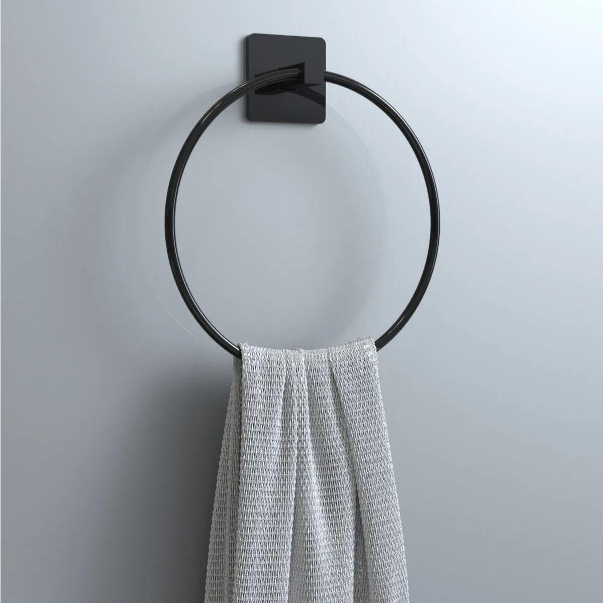 Kendiliğinden yapışkanlı siyah paslanmaz metal yuvarlak havluluk, şık tasarımıyla dekorunuza estetik bir değer katar ve havlu saklama konusunda pratik bir çözüm sunar. Paslanmaz metal malzemesiyle uzun ömürlü kullanım sağlar ve kullanıcılarına kullanım kolaylığı sunar.