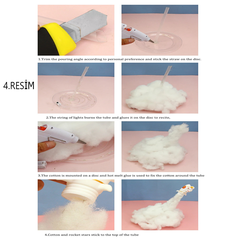 Kendin Yap Uçan Astronot Tasarımlı Gece Lambası, hazır haliyle 20x25 cm boyutundadır. Kaliteli plastik malzemeden üretilmiş olan bu gece lambası, demonte halde gönderilmektedir. Paket içerisinde uçan astronot dekorasyonlu roket, pamuk, çubuk ve silikon bulunur. Üründe ayrıca 2 metre şerit LED ışık bulunmakta olup, şerit ışık ile ortamınızı aydınlatırken, şık bir atmosfer yaratır. Hem eğlenceli hem de yaratıcı bir proje olarak kullanılabilir. Uçan astronot, roket üzerinde dekoratif olarak yer alır, bu da ürüne modern bir görünüm kazandırır.