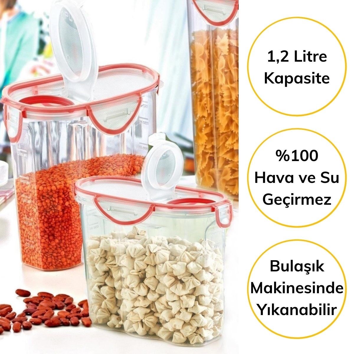 - Kuru bakliyatlarınızı ve erzaklarınızı daha düzenli, güvenli ve sağlıklı bir şekilde saklamanıza yardımcı olur.