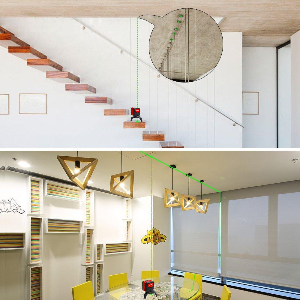 · Bir adet yatay, bir adet dikey çizgi lazer ve 2 noktalı Şakül ile oluşan artı lazer hattı ile son derece kullanışlı yeşil lazer hizalama,