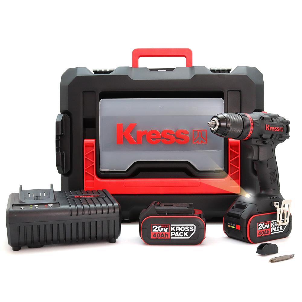 · Kress KUC30 20Volt/4.0Ah Li-ion Çift Akülü Kömürsüz Profesyonel Şarjlı Darbeli Matkap