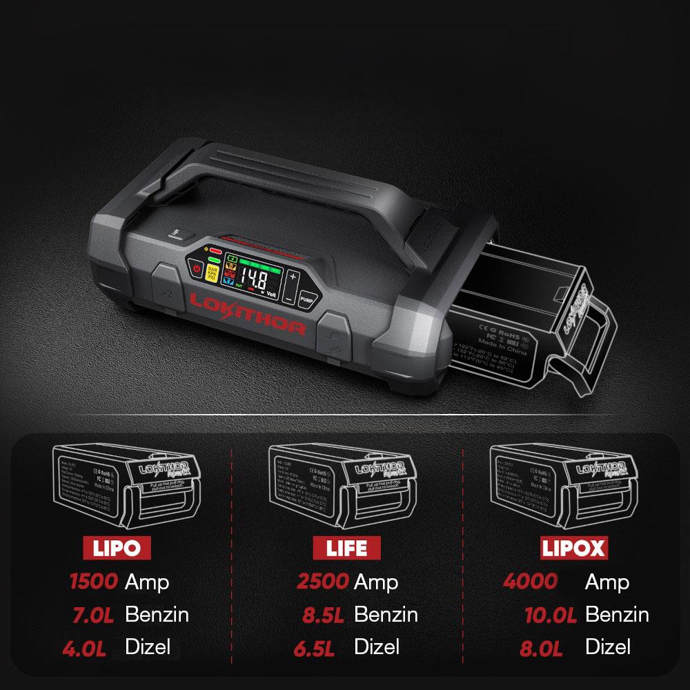 • Haricen alınabilen LIPO, LIFE ve LIPOX model aküleri satın alarak 1500A / 2500A ve 4000A olarak üç farklı anlık takviye gücünde kullanım imkânı sağlar.