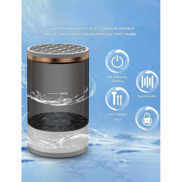 Makyaj fırçası temizleme makinesi, fırçalarınızı zahmetsizce temizlemenizi sağlayan pratik ve yenilikçi bir çözümdür. Tüm fırça boyutlarına uyumlu olarak tasarlanmıştır ve makyaj fırçalarına zarar vermeden derinlemesine temizlik sunar. Su haznesi üzerinde maksimum seviye göstergesi bulunur ve içerisine fırçalar kolayca yerleştirilir. Tek dokunuş sensörü sayesinde cihaz hızlıca çalışmaya başlar ve düşük gürültülü motoru ile konforlu bir kullanım sağlar. Enerji tasarruflu yapısı sayesinde çevre dostu bir üründür. Günlük makyaj rutininin hijyenik bir şekilde devam etmesi için ideal bir üründür.