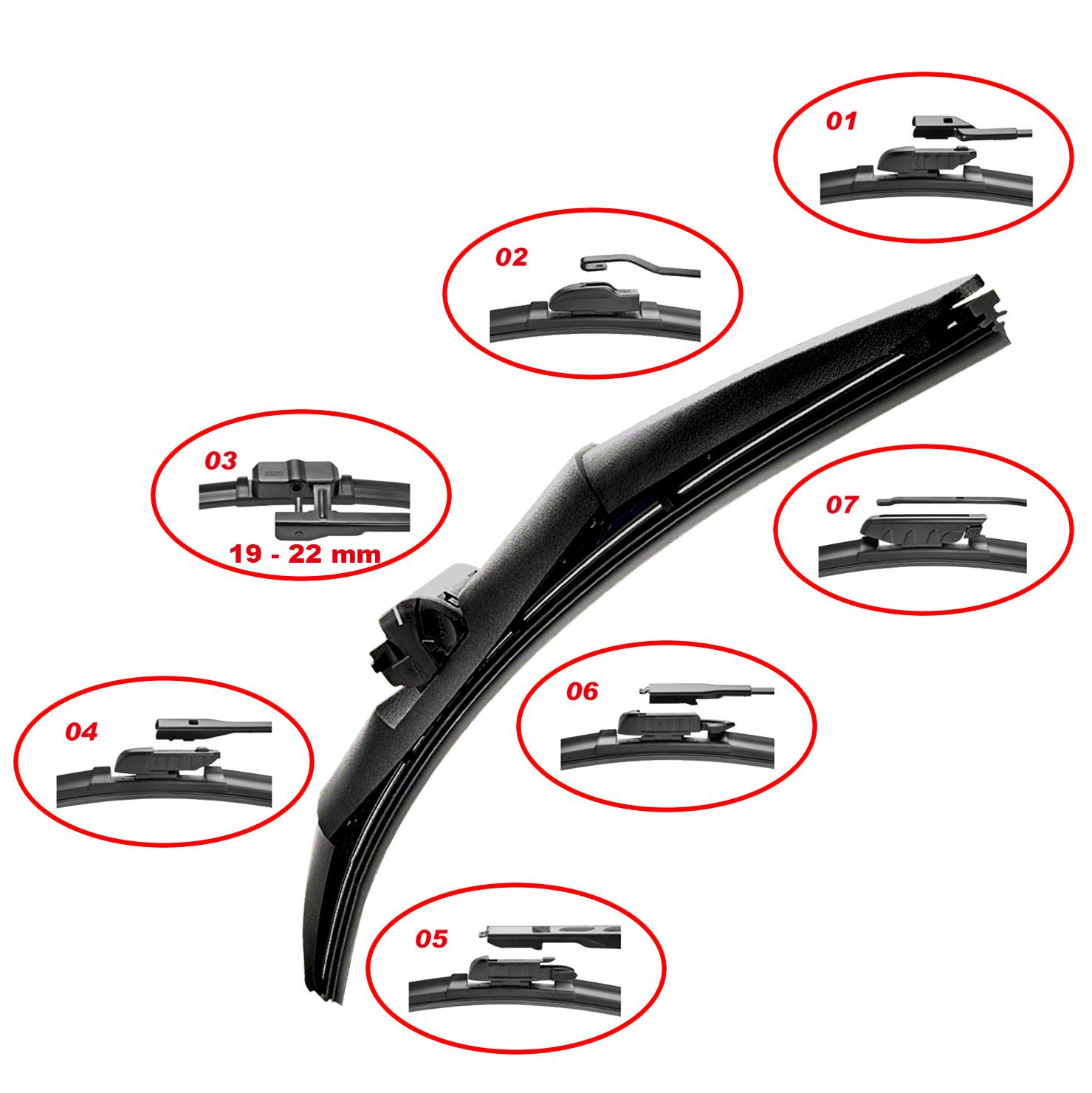 • 3 adet evrensel bağlantı adaptör sayesinde kolay ve hızlıca takılırlar, kolay ve hızlı silecek değiştirme imkânı sağlar,