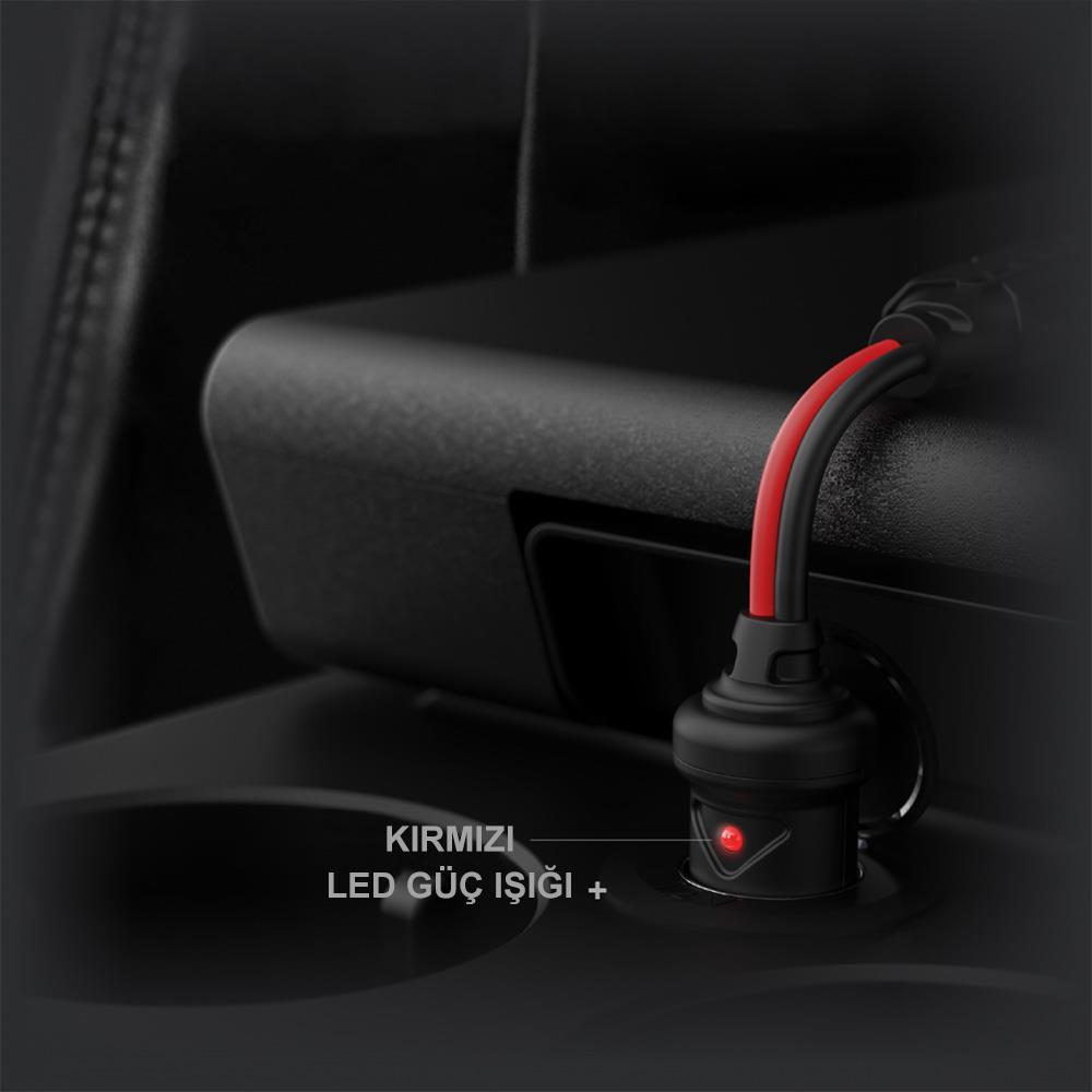 · 12V Erkek fiş adaptörünün üzerinde bulunan kırmızı LED lamba sayesinde çakmaklık kablosunda enerji olup olmadığını kontrol edebilirsiniz.