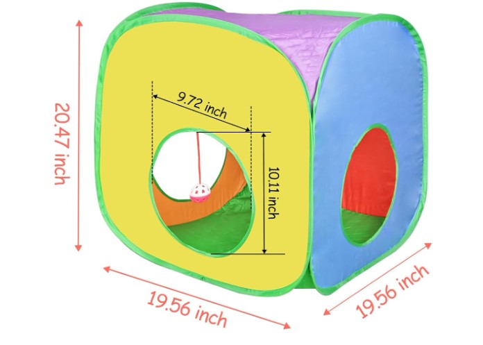 Oyuncak Toplu Kedi Oyun TüneliÜrün Açıklaması:Kediniz için özel olarak tasarlanmış bu renkli oyun çadırı, hem oyun hem de saklanma alanı sunar. İçinde bulunan asılı oyuncak top ile kedinizin ilgisini çeker, onu eğlenceli vakit geçirmeye teşvik eder. Dayanıklı kumaş yapısı ve renkli tasarımıyla evinizde şık bir kedi aksesuarıdır. Kurulumu ve saklaması kolay olan bu çadır, kedinizin günlük enerjisini atmasına yardımcı olur.Boyutlar: Geniş oyun alanıMalzeme: Dayanıklı ve güvenli kumaşÖzellikler: Renkli tasarım, asılı oyuncak top, kolay kurulum