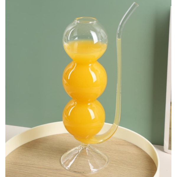 Estetik ve sıra dışı tasarımıyla dikkat çeken pipetli boğumlu cam bardak, içecek sunumlarına şıklık ve eğlence katmak isteyenler için ideal bir üründür. Üç adet bombeli boğumdan oluşan gövdesi ve entegre cam pipeti ile farklı bir içim deneyimi sunar. Soğuk içecekler, kokteyller, aromalı içecekler ve meyve suları için kullanıma uygundur. Cam malzemeden üretilmiştir ve şeffaf yapısı sayesinde içeceğin rengi şık bir şekilde sergilenir. Özel davetlerde, pikniklerde veya günlük kullanımlarda fark yaratır. El yapımı havası ve özgün formuyla dikkat çeker.