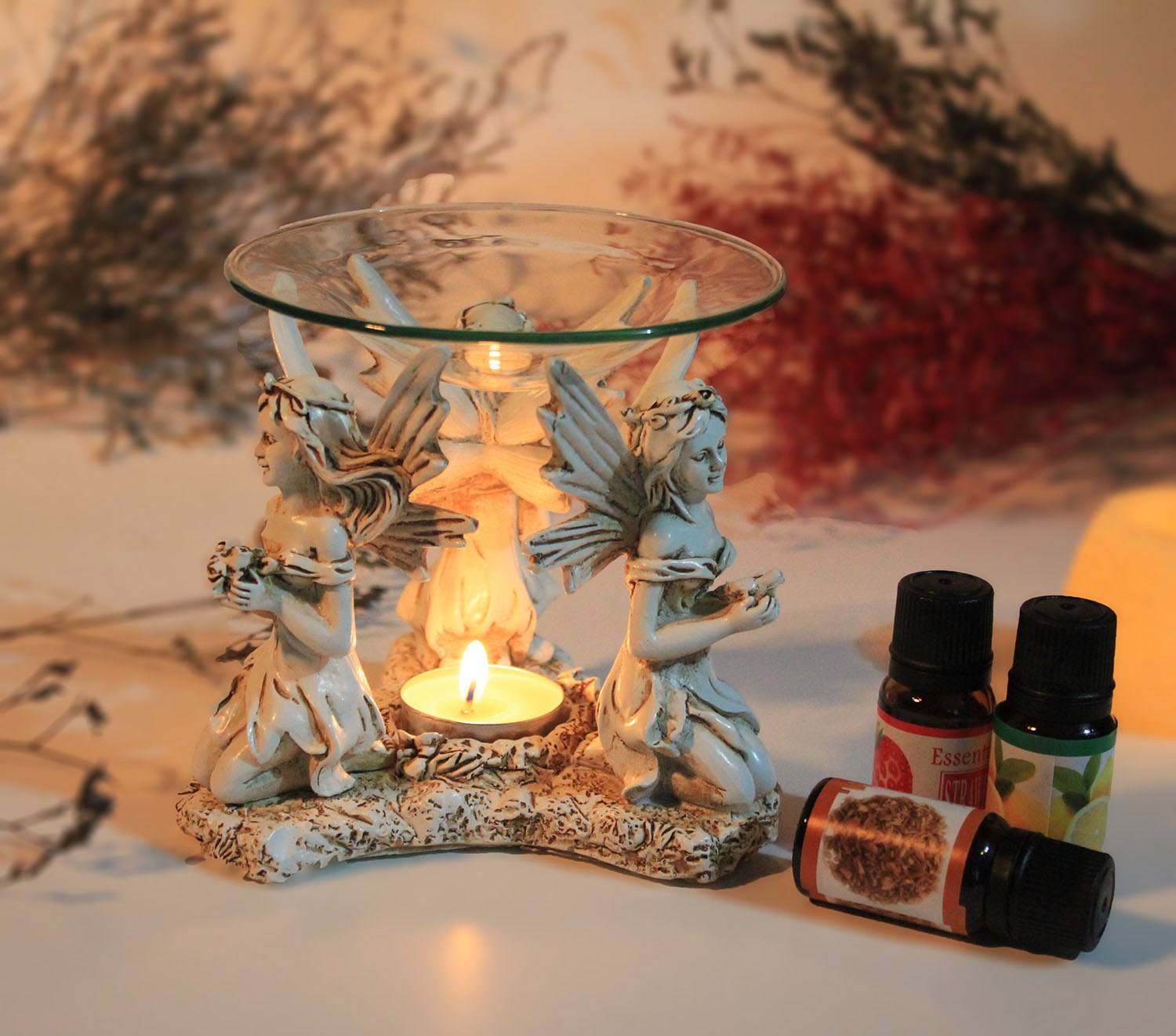 POLYESTER MELEKLİ BUHURDANLIK MODEL 2Ürün ÖzellikleriPolyester Melekli Buhurdanlık Model 2 estetik bir tasarıma sahip olup, dua eden melek figürleriyle bezeli bir yapıya sahiptir. Yumuşak renk tonlarıyla harmanlanmış figürleri, ruhani bir atmosfer yaratır ve evlerde kullanılabilecek harika bir dekoratif üründür. Bu buhurdanlık, cam tepsi kısmı ile rahatça kullanılabilir ve çevreye hoş bir koku yayarak ortamı ferahlatır. Özellikle manevi ortamlar için mükemmel bir seçim olan bu ürün, hediye olarak da idealdir.Paket İçeriği1 adet Polyester Melekli Buhurdanlık Model 2