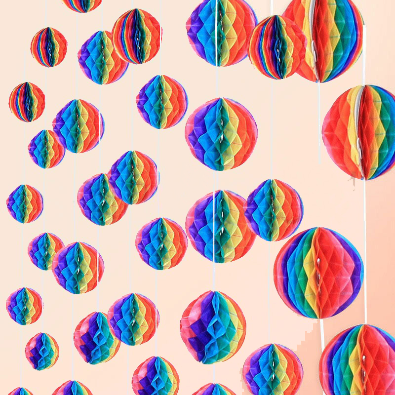 1 Adet Rengarenk Kağıt Süs Fener 30 cm