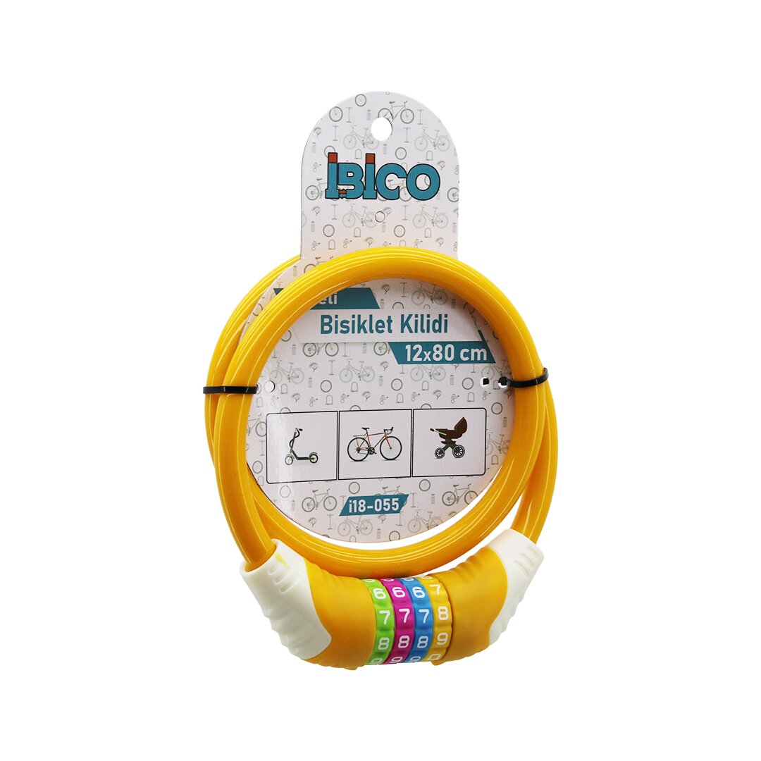 ŞİFRELİ KALIN BİSİKLET KİLİT ÇELİK TEL TURUNCU RENKLİ KILIF 12MMX80CM