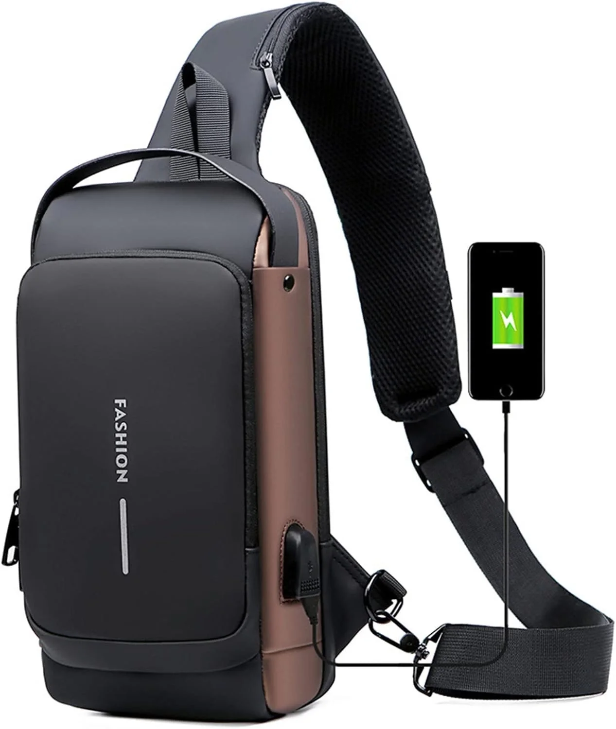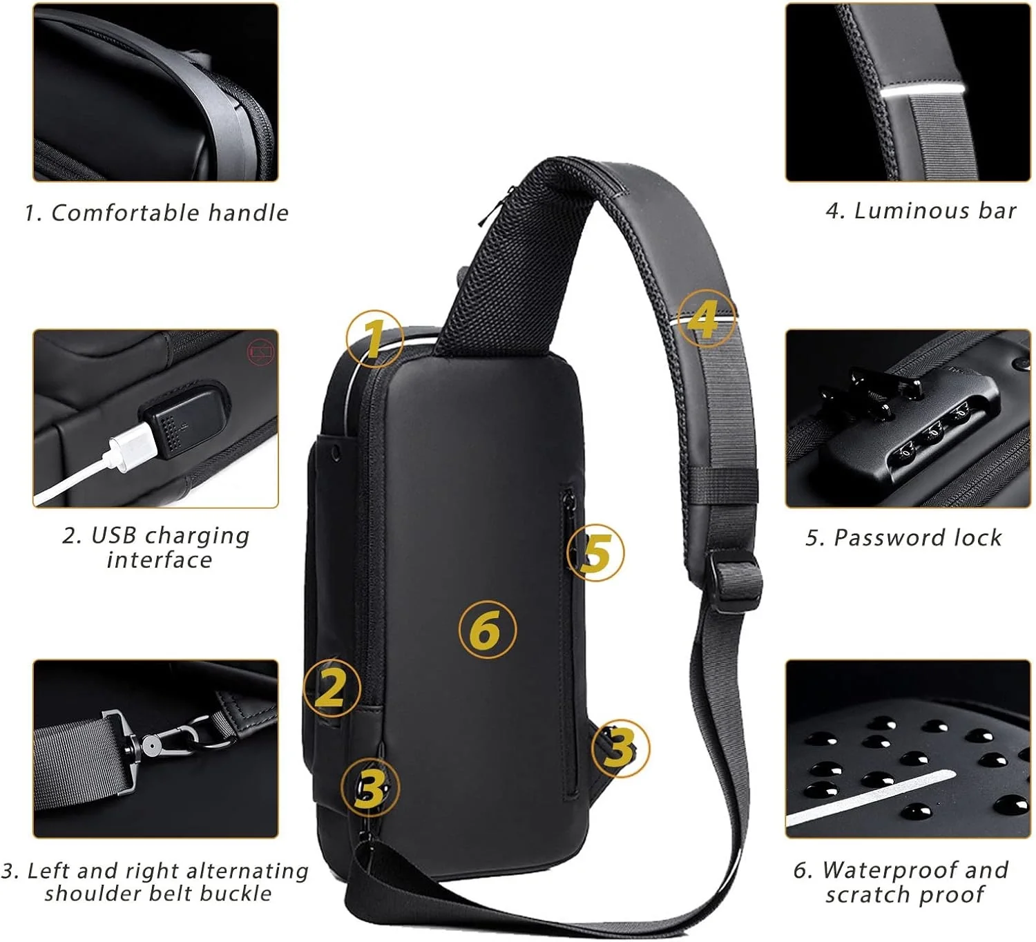 Hırsızlık karşıtı çapraz askılı çanta, USB şarjlı su geçirmez göğüs sırt çantası, şifreli kilitli motosiklet sırt çantası