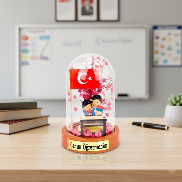 1 adet Türk Bayraklı Sıralı Ters Fanus - Öğretmenler Günü Hediyesi