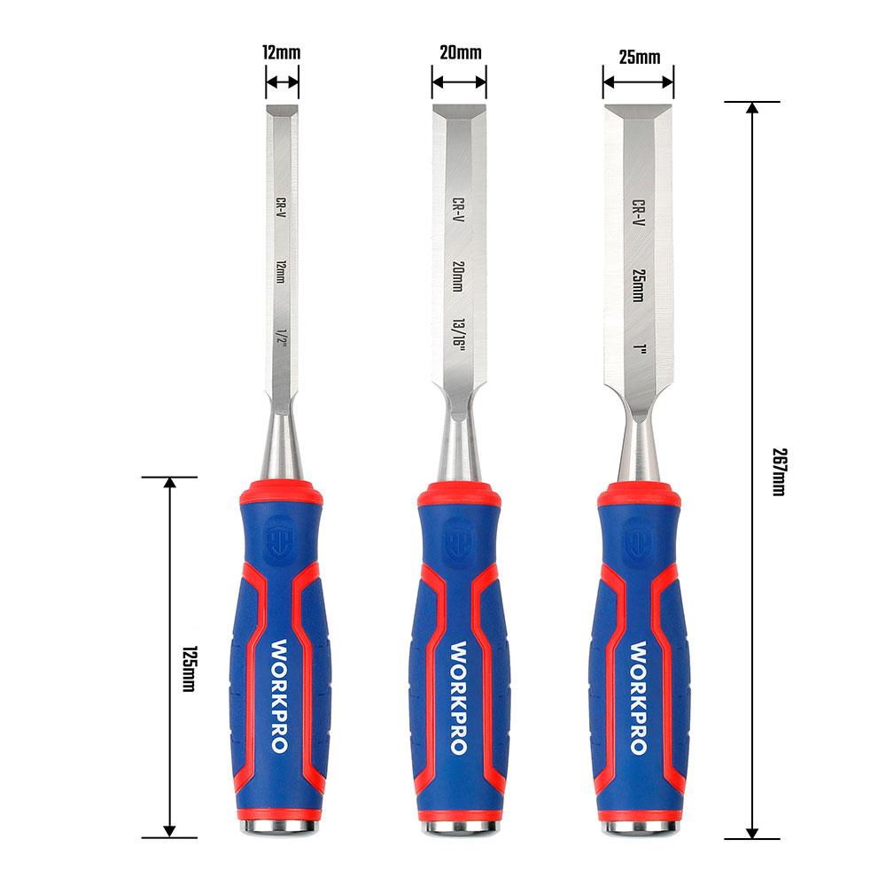 • WORKPRO WP201301 12-20-25MM Üçlü Profesyonel İskarpela Seti