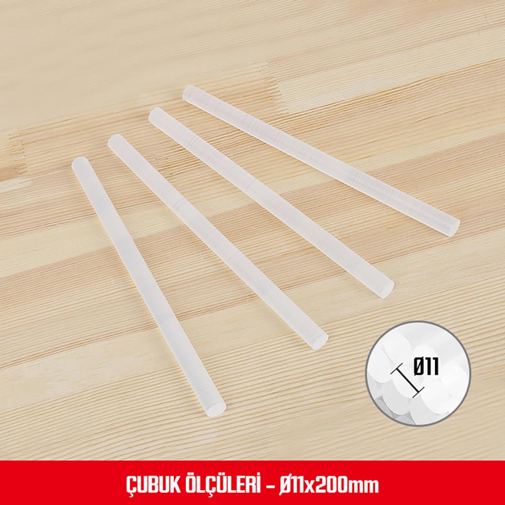 • WORKPRO WP432002 11x200mm Sıcak Silikon Tabancası İçin 50 Adet Şeffaf Yedek Silikon/Mum