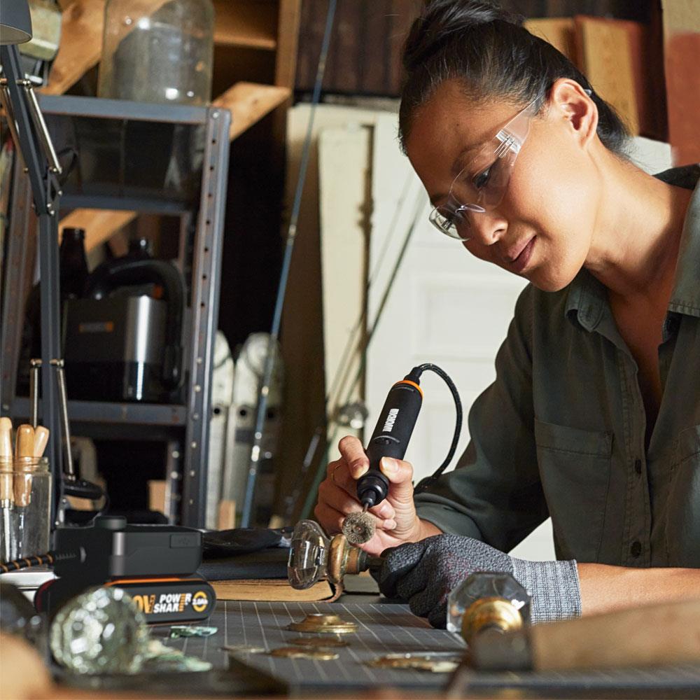 · Son derece kompakt tasarım ve amper fark etmeksizin 20Volt Worx Aküler ile kullanıma uygun devir ayarlı kömürsüz motor teknolojisine sahip Gravür makinesi ile metal, cam, doğal taş, ahşap gibi tüm yüzeylerde yazı yazma, oymacılık, kesme, zımparalama, parlatma, törpüleme gibi birden fazla işlemde hobi veya profesyonel amaçlı kullanım imkânı sağlar.